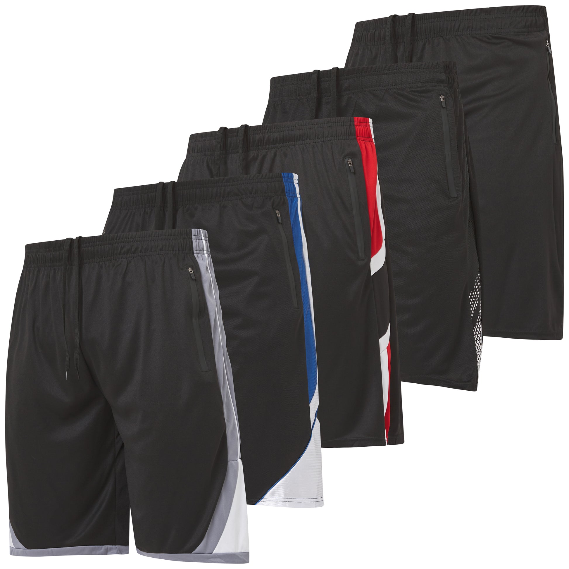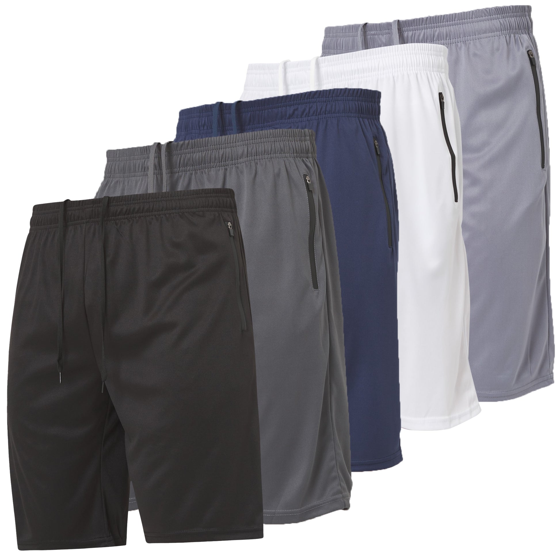 Men's Gym Shorts with Zippered Pockets, 5 Pack
